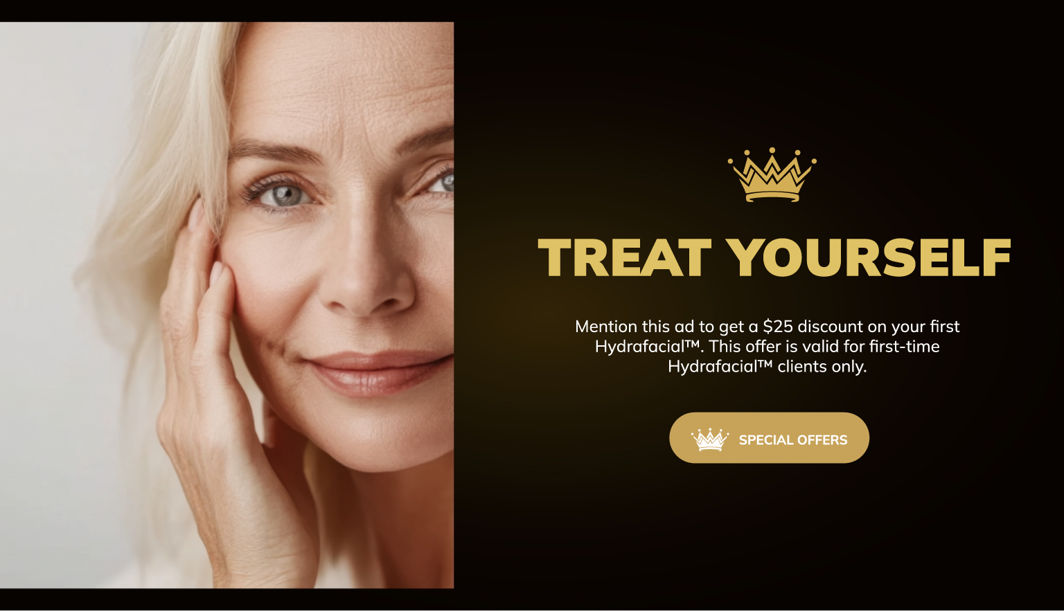 Mention this ad to get a $25 discount on your first Hydrafacial™. This offer is valid for first-time Hydrafacial™ clients only.
